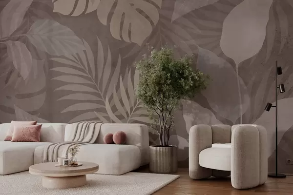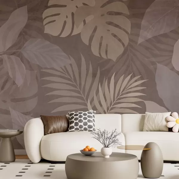Fotomurales hojas tropicales texturizadas sobre fondo chocolate Nr. w05063v2