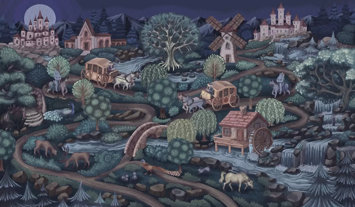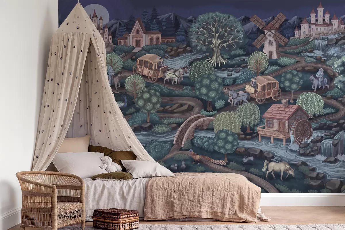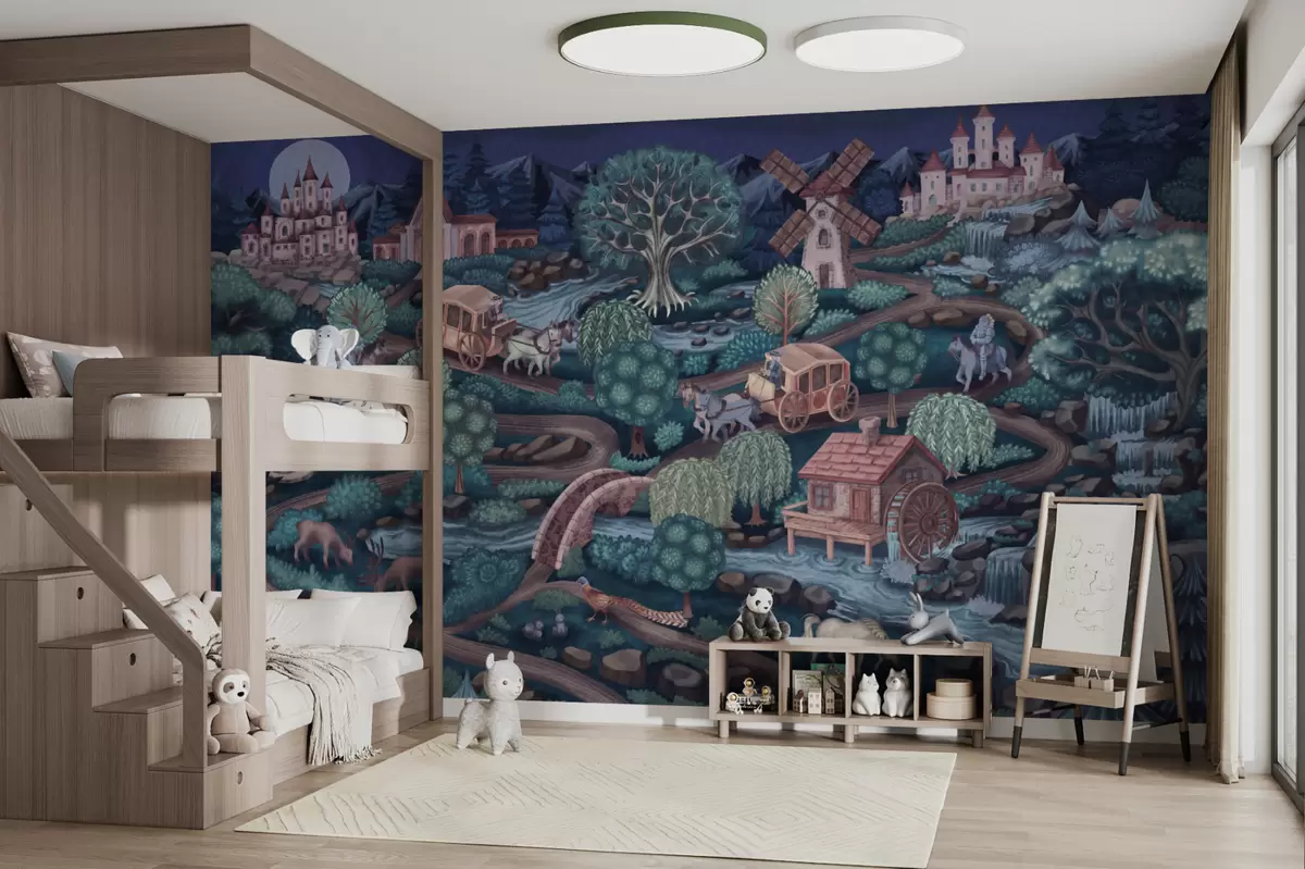 Fotomurales Escena nocturna con castillos, molinos y bosques Nr. w05091
