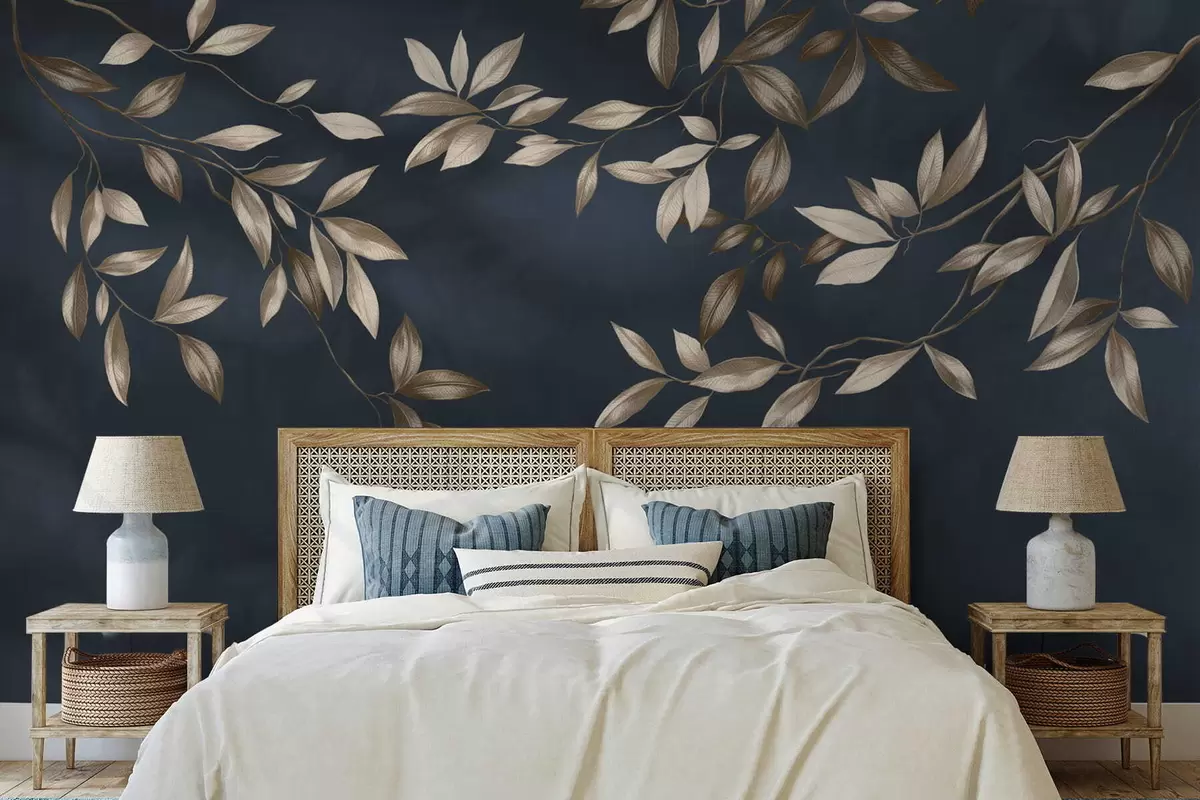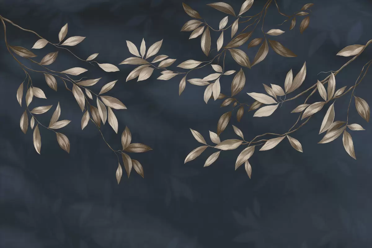 Fotomurales Ramas decorativas con hojas sobre un fondo azul intenso. Nr. w05113v1