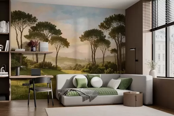 Fotomurales Paisaje con árboles bajo la cálida luz del atardecer Nr. w05122