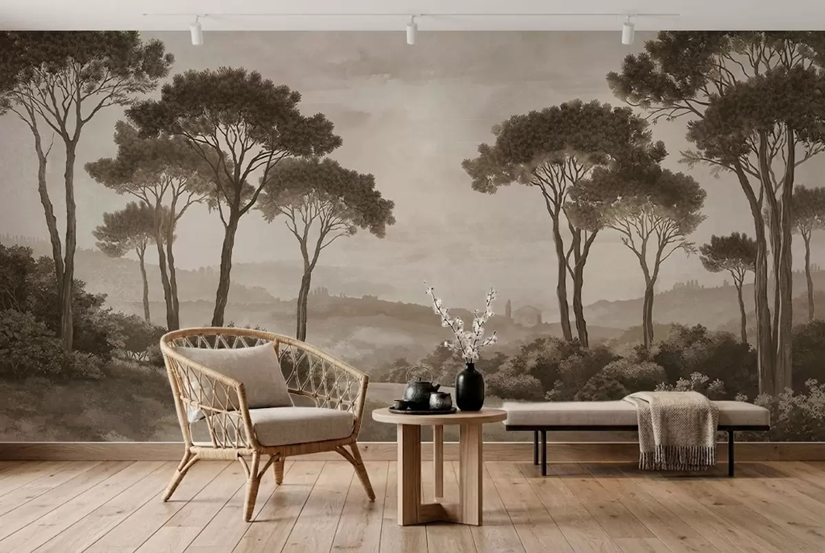 Fotomurales Paisaje con árboles en tonos sepia vintage Nr. w05122v2