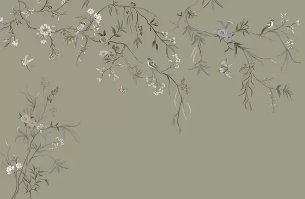 Fotomurales Delicadas flores y pájaros sobre fondo de tiza. Nr. w05127
