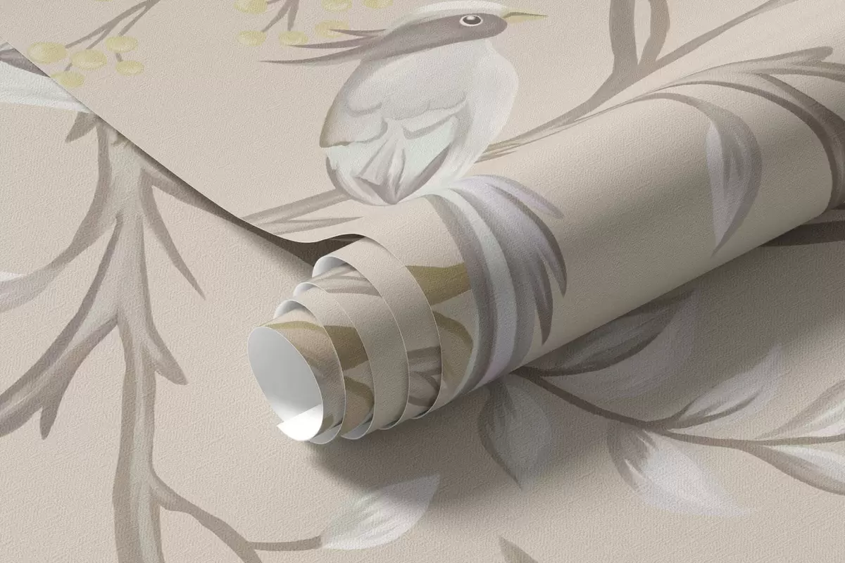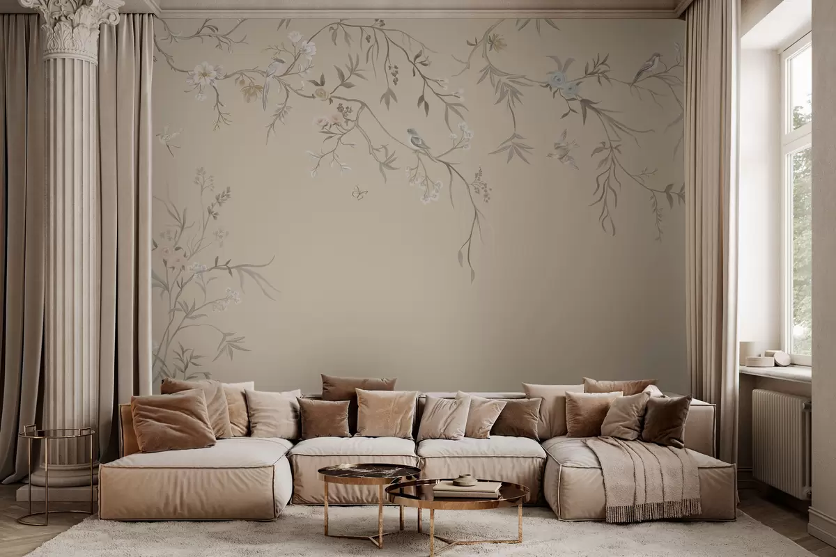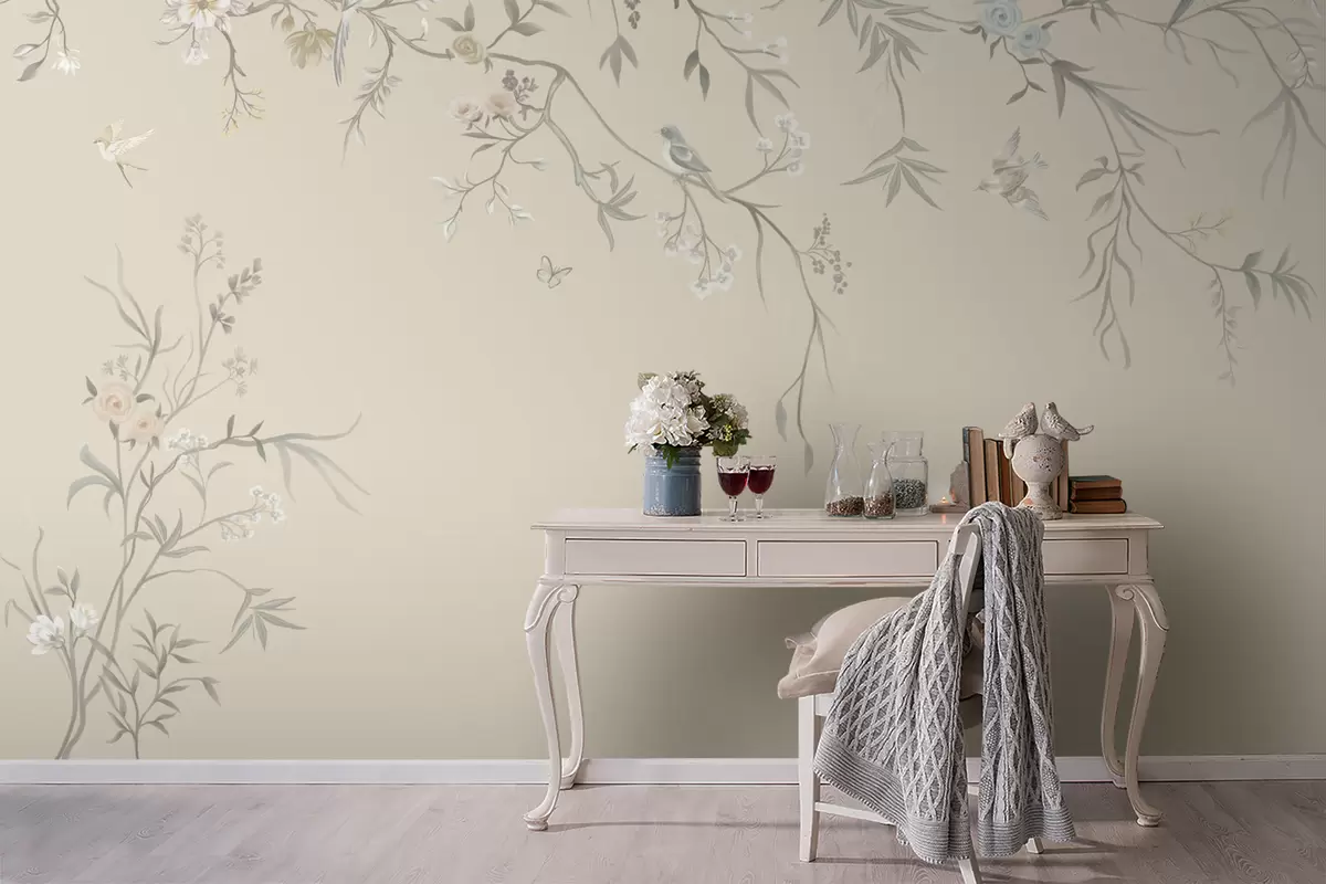Fotomurales Flores y pájaros ligeros sobre un fondo pastel. Nr. w05127v2