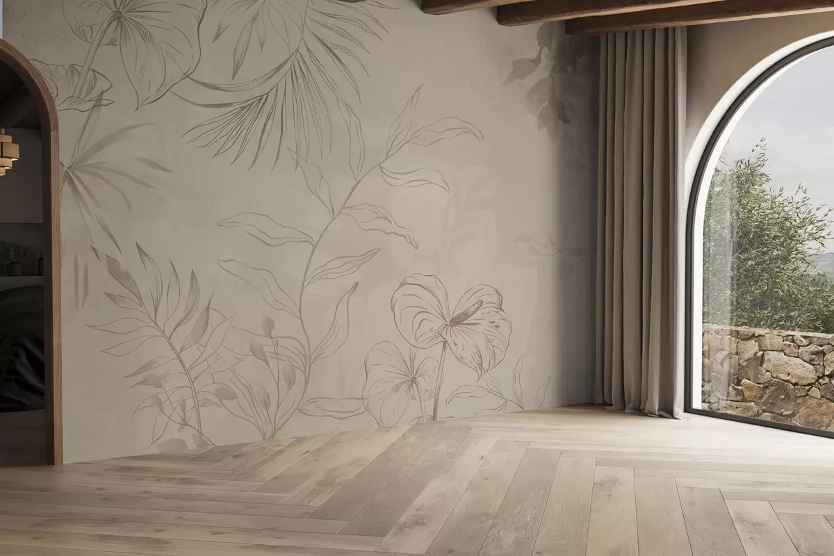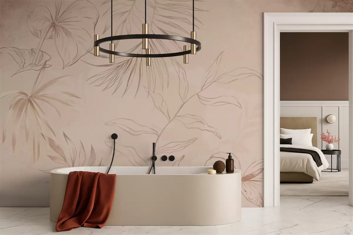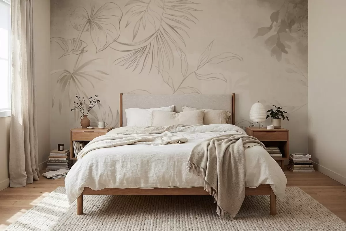 Fotomurales Plantas lineales sobre fondo beige texturizado Nr. w05128