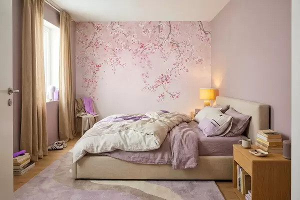 Fotomurales Ramitas con flores rosas sobre un fondo pastel suave. Nr. w05129v1