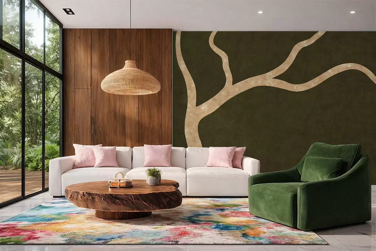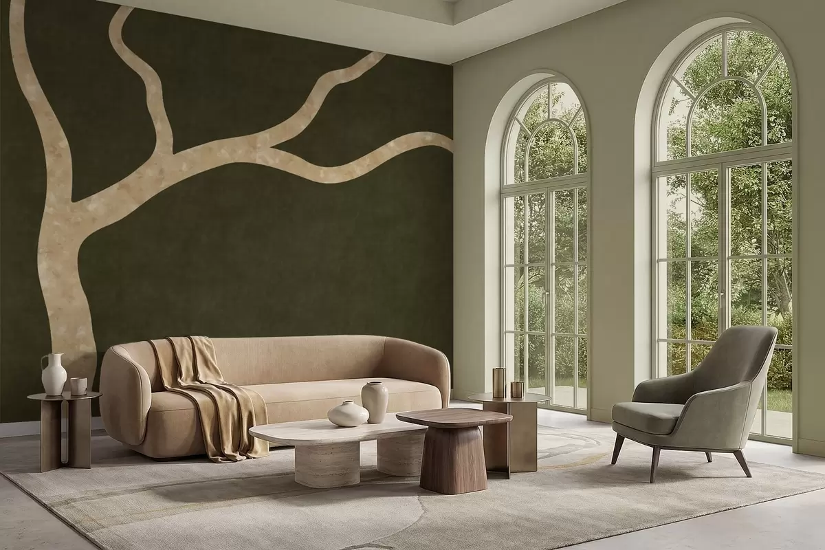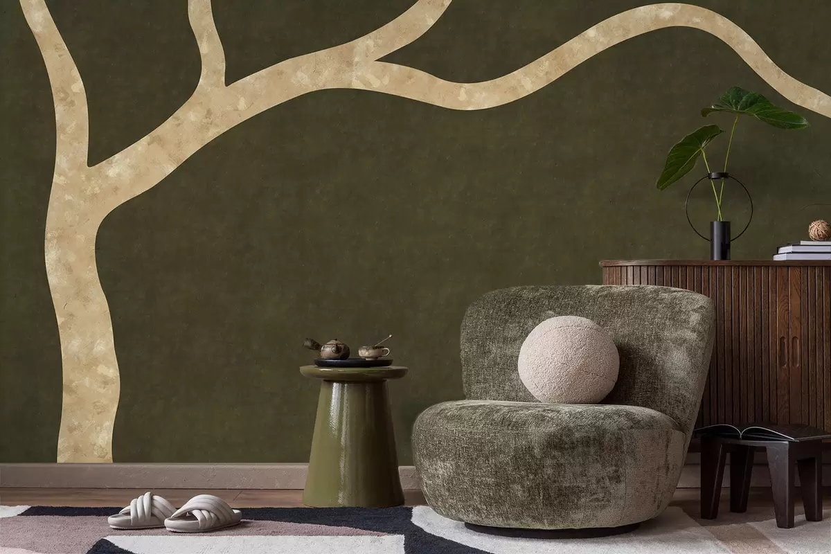 Fotomurales Rama clara sobre fondo oliva Nr. w05144v2