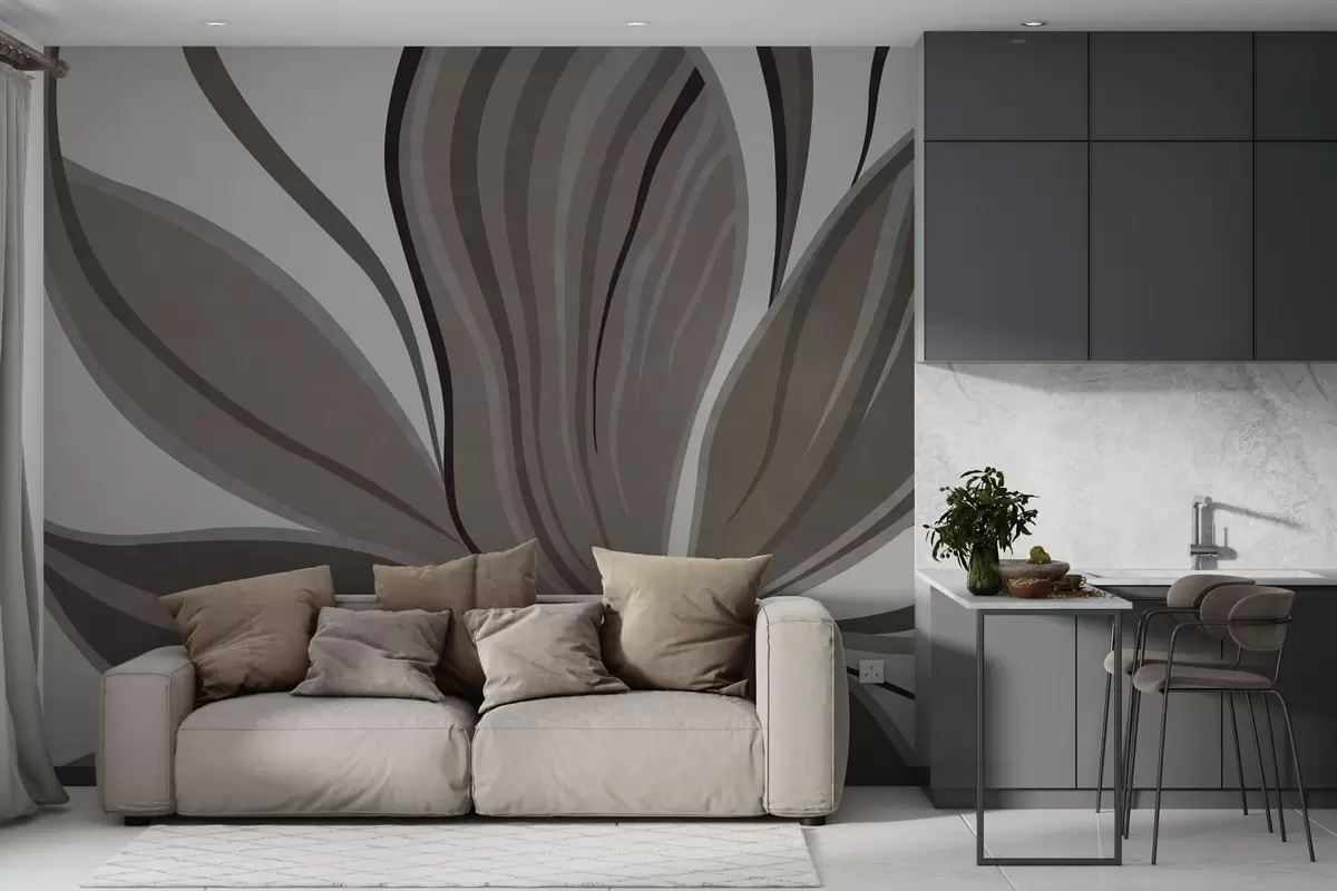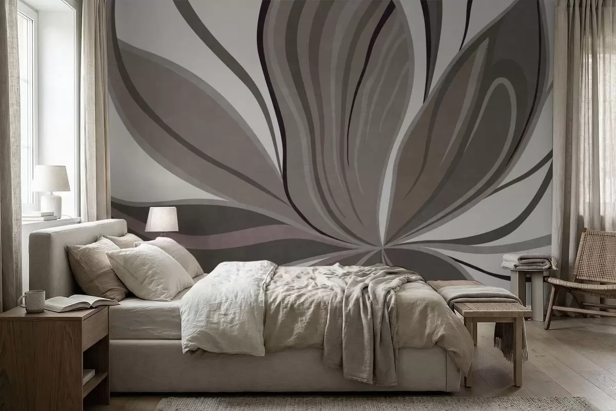 Fotomurales Flor abstracta con líneas suaves en tonos gris-beige Nr. w05147v1