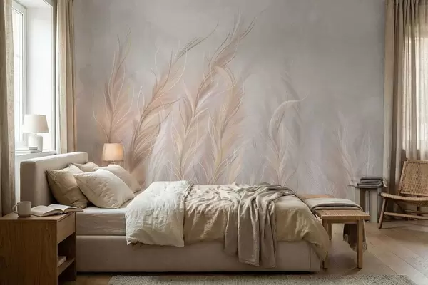 Fotomurales Plumas suaves y abstractas en tonos neutros claros. Nr. w05153