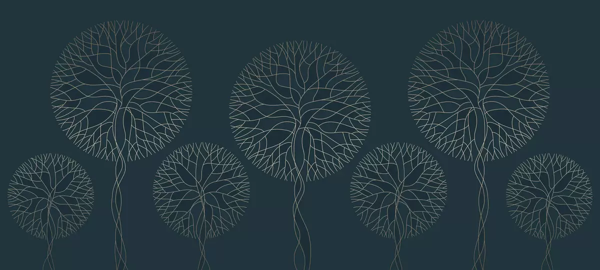Fotomurales Árboles lineales fantásticos con copas frondosas en elegantes tonos esmeralda oscuro. Nr. w05213