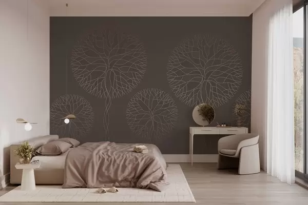 Fotomurales Árboles lineales fantásticos con copas frondosas en elegantes tonos moca. Nr. w05213v1