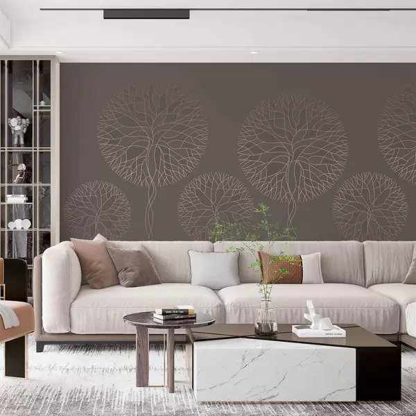 Fotomurales Árboles lineales fantásticos con copas frondosas en elegantes tonos moca. Nr. w05213v1