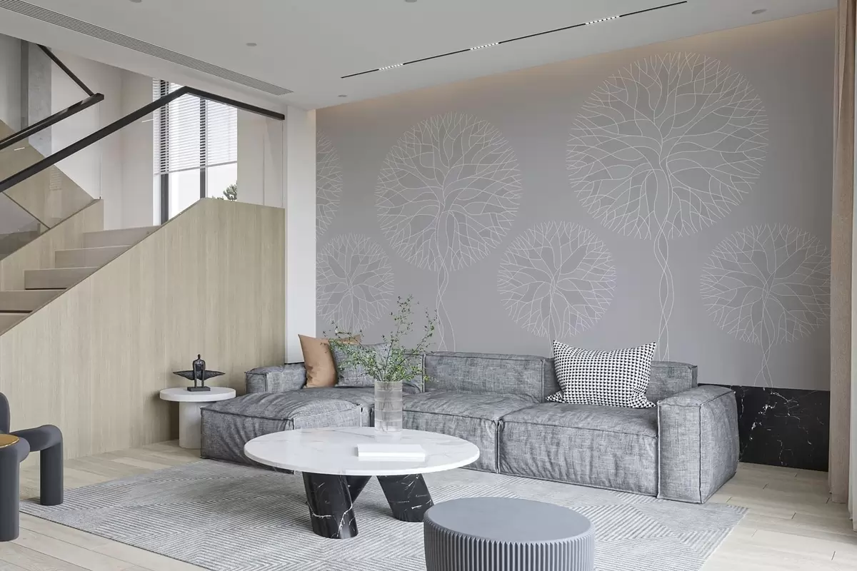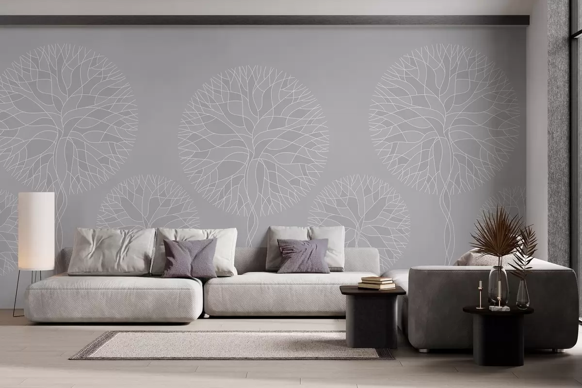 Fotomurales Árboles lineales fantásticos con copas frondosas en tonos gris claro. Nr. w05213v4
