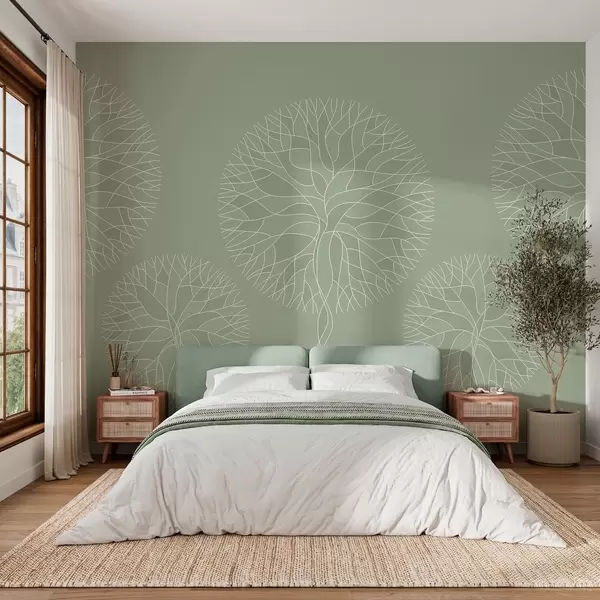 Fotomurales Árboles lineales fantásticos con copas frondosas en tonos verde claro. Nr. w05213v6