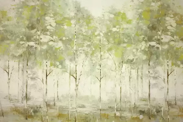 Fotomurales Bosque estilizado con árboles esbeltos en tonos cálidos. Nr. w05221