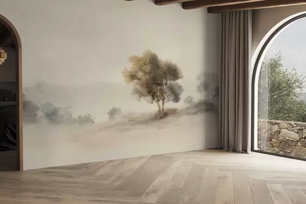 Fotomurales Paisaje minimalista con un árbol solitario en la niebla. Nr. w05223
