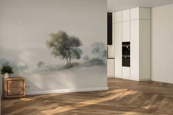 Fotomurales Paisaje tranquilo con un árbol y formas suaves y difuminadas. Nr. w05223v1