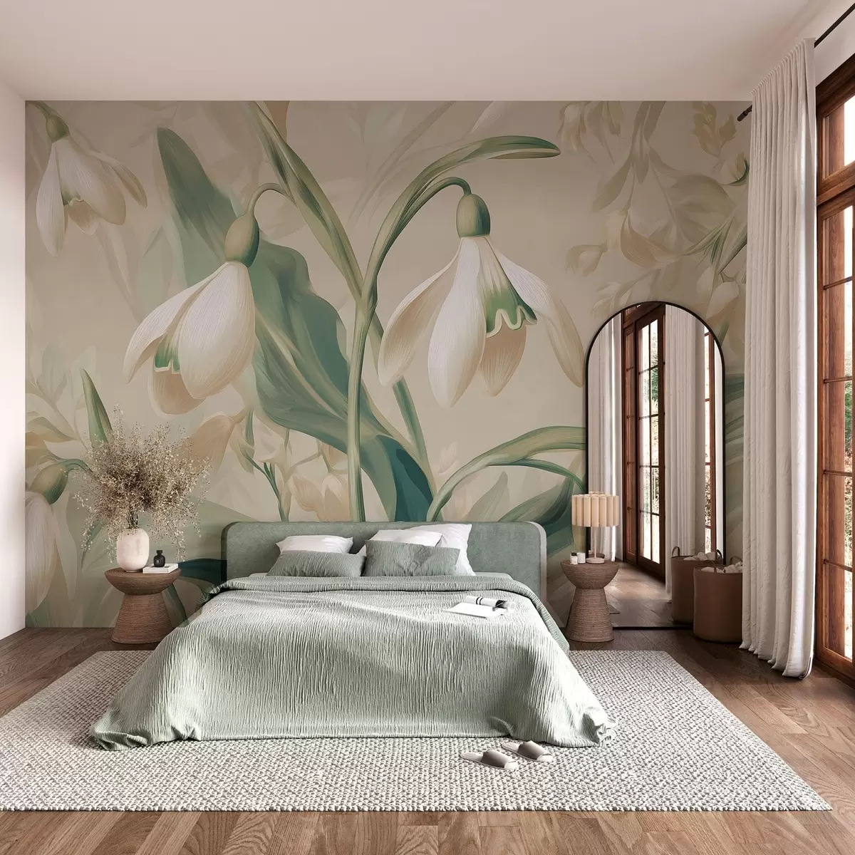 Fotomurales flores de nieve en flor sobre un fondo beige Nr. w05234