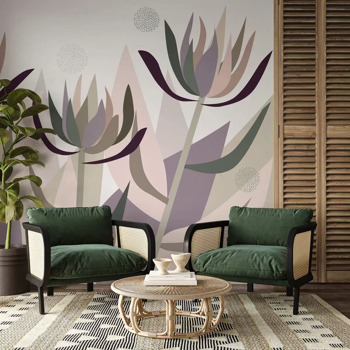 Fotomurales flores de protea estilizadas en estilo primitivo Nr. w05236