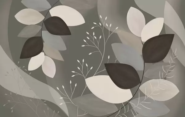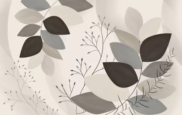 Fotomurales hojas y hierbas en tonos beige, gris y marrón Nr. w05237