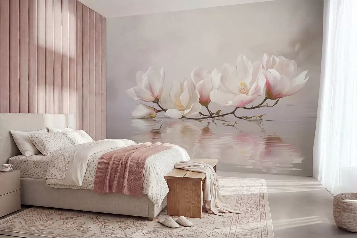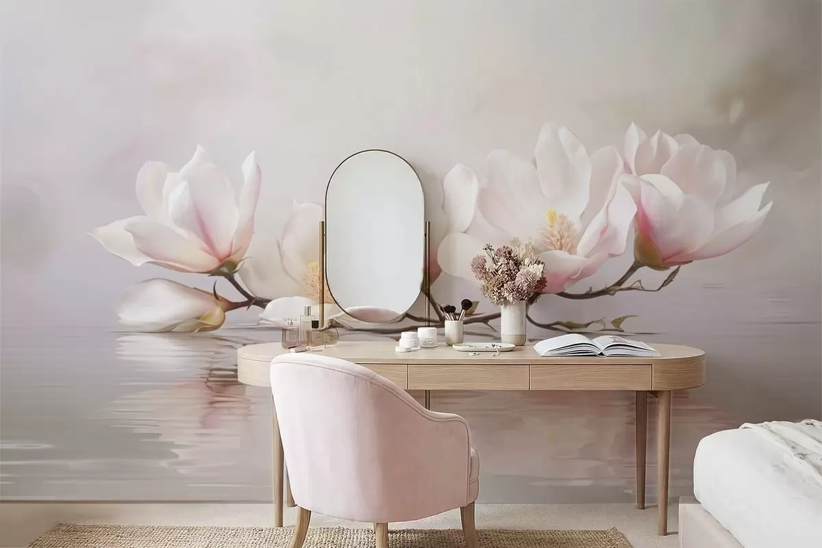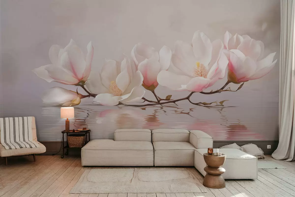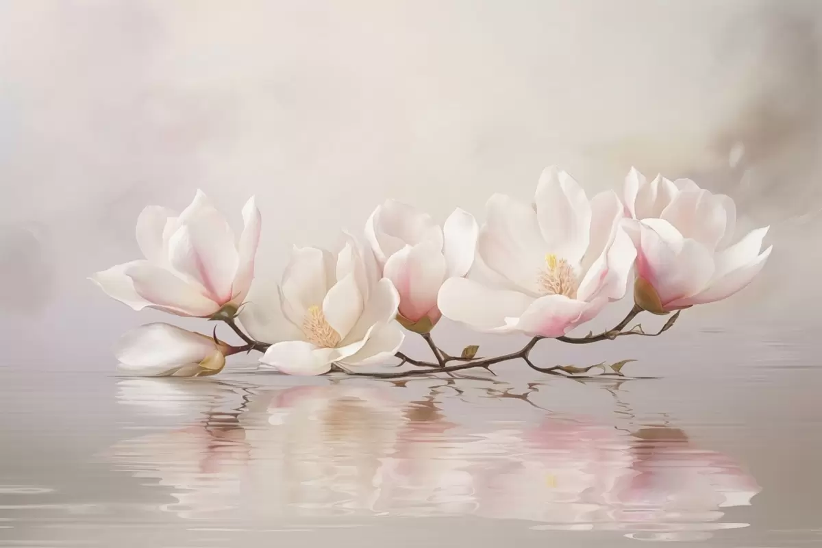 Fotomurales Rama de magnolia con flores sobre el reflejo de aguas tranquilas Nr. w05353v1