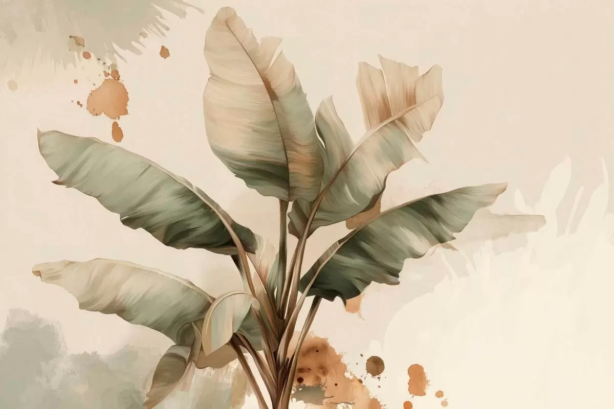 Fotomurales un gran y pintoresco racimo de hojas de plátano con toques de estilo retro Nr. w05384