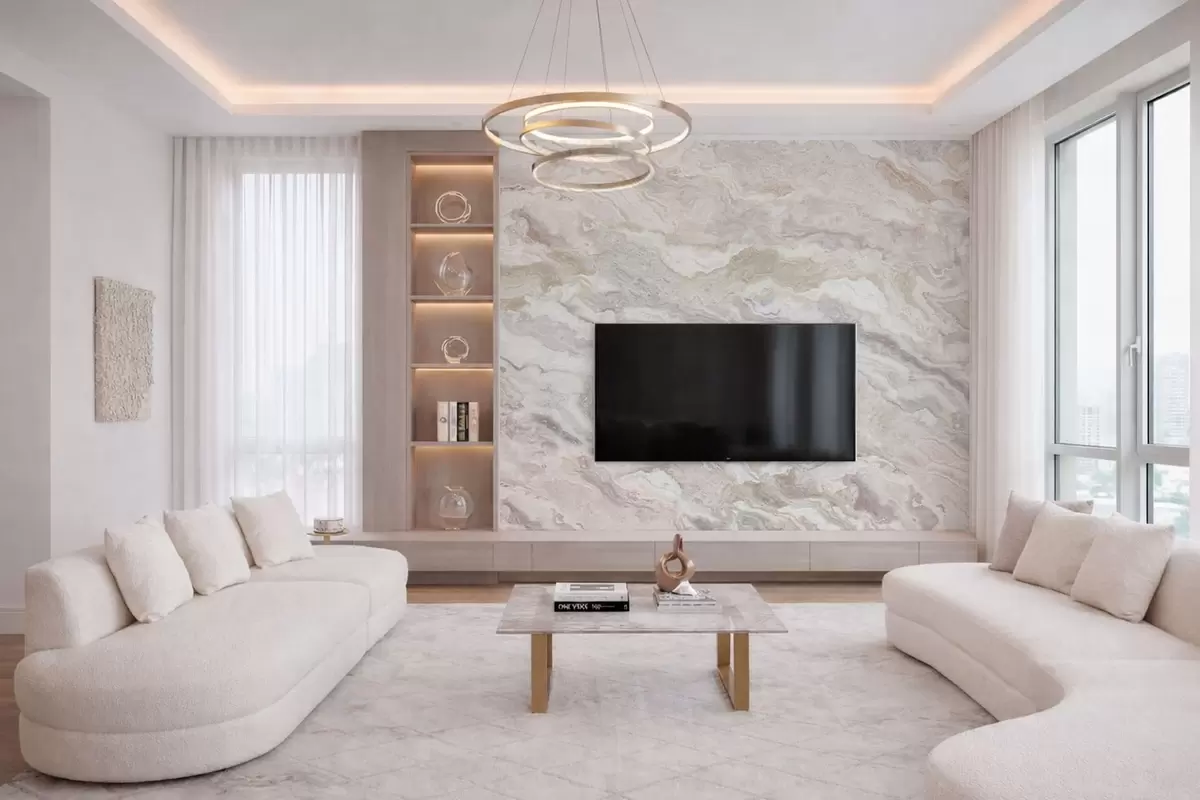Fotomurales Ónix claro con capas fluidas en tonos beige y gris Nr. w05430