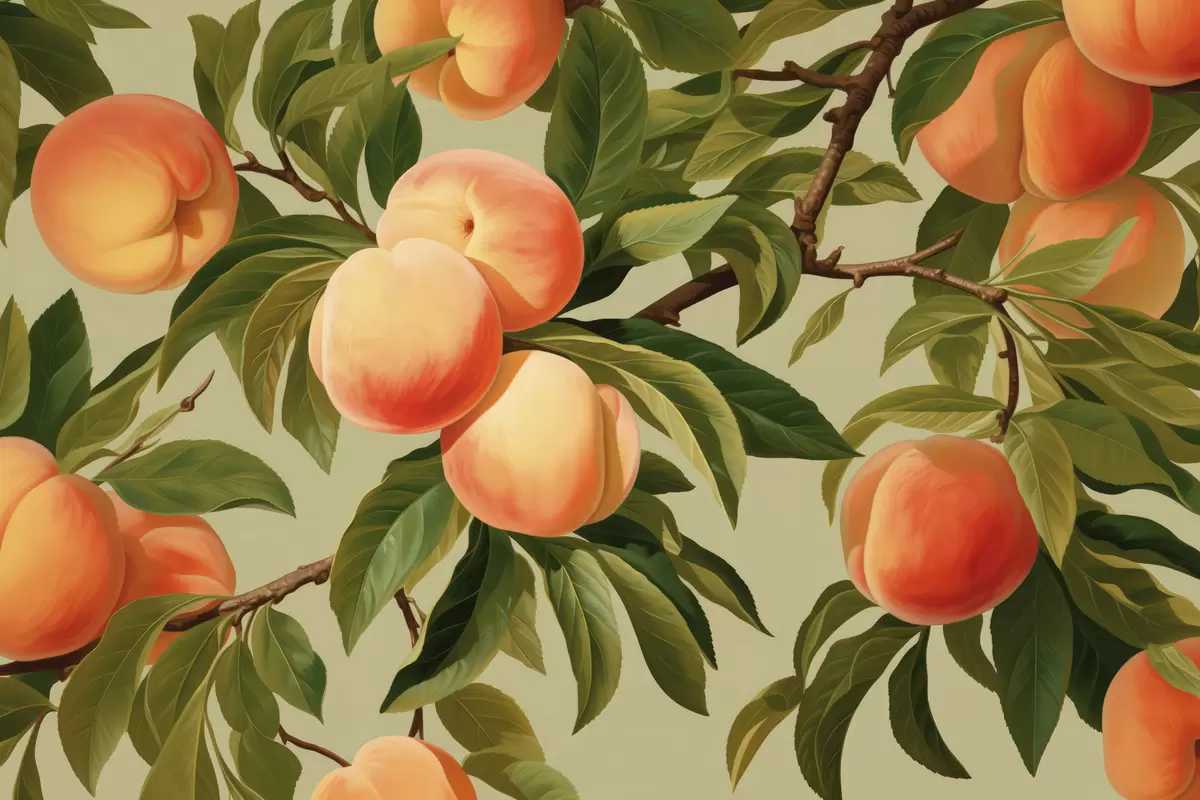 Fotomurales Melocotones maduros en las ramas Nr. w05444