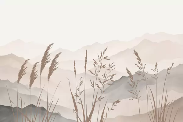 Fotomurales Siluetas de hierba con las montañas de fondo Nr. w05501