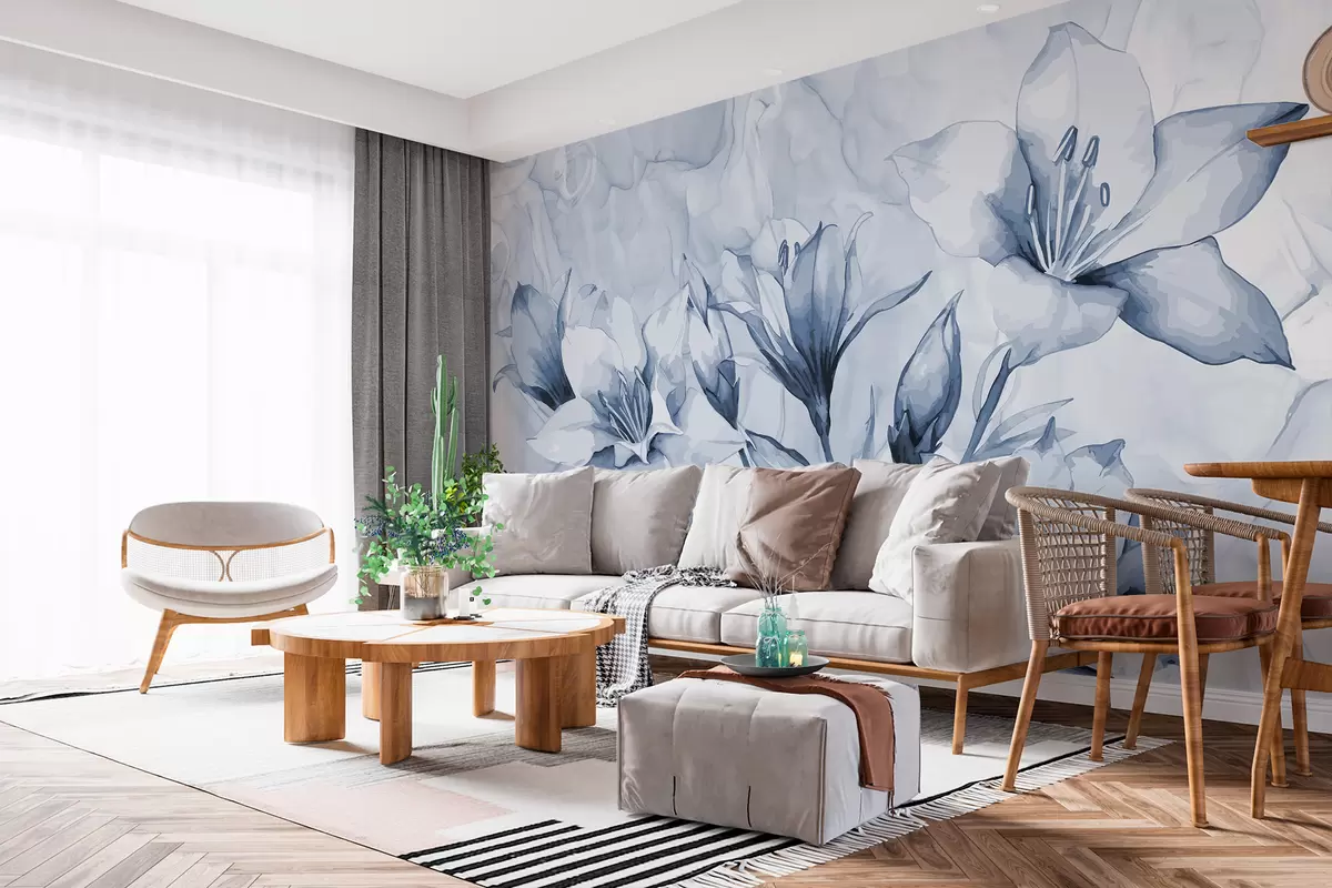 Fotomurales Flores azules sobre fondo azul. Nr. w07897