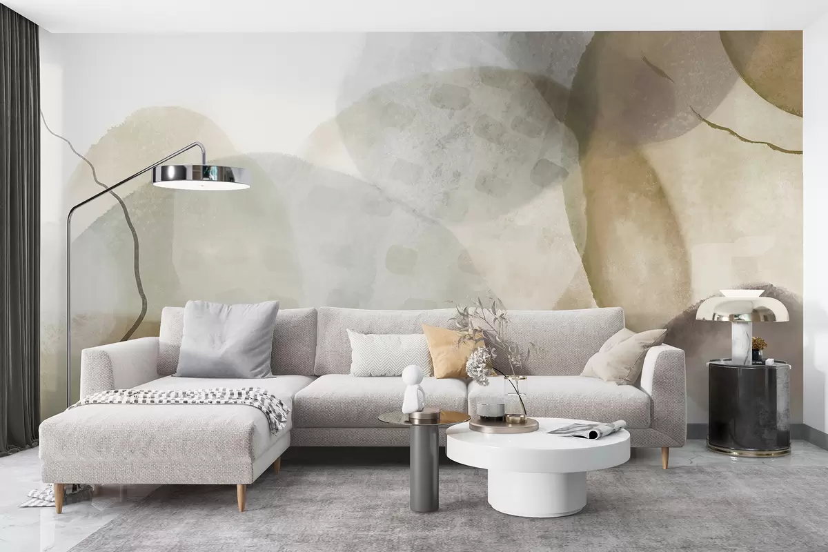 Fotomurales Suaves formas abstractas de acuarela en tonos marrón, sepia y blanco. Nr. w07926v1