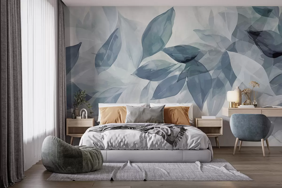 Fotomurales Hojas de acuarela suaves en gris y blanco con un fondo etéreo y borroso Nr. w07981