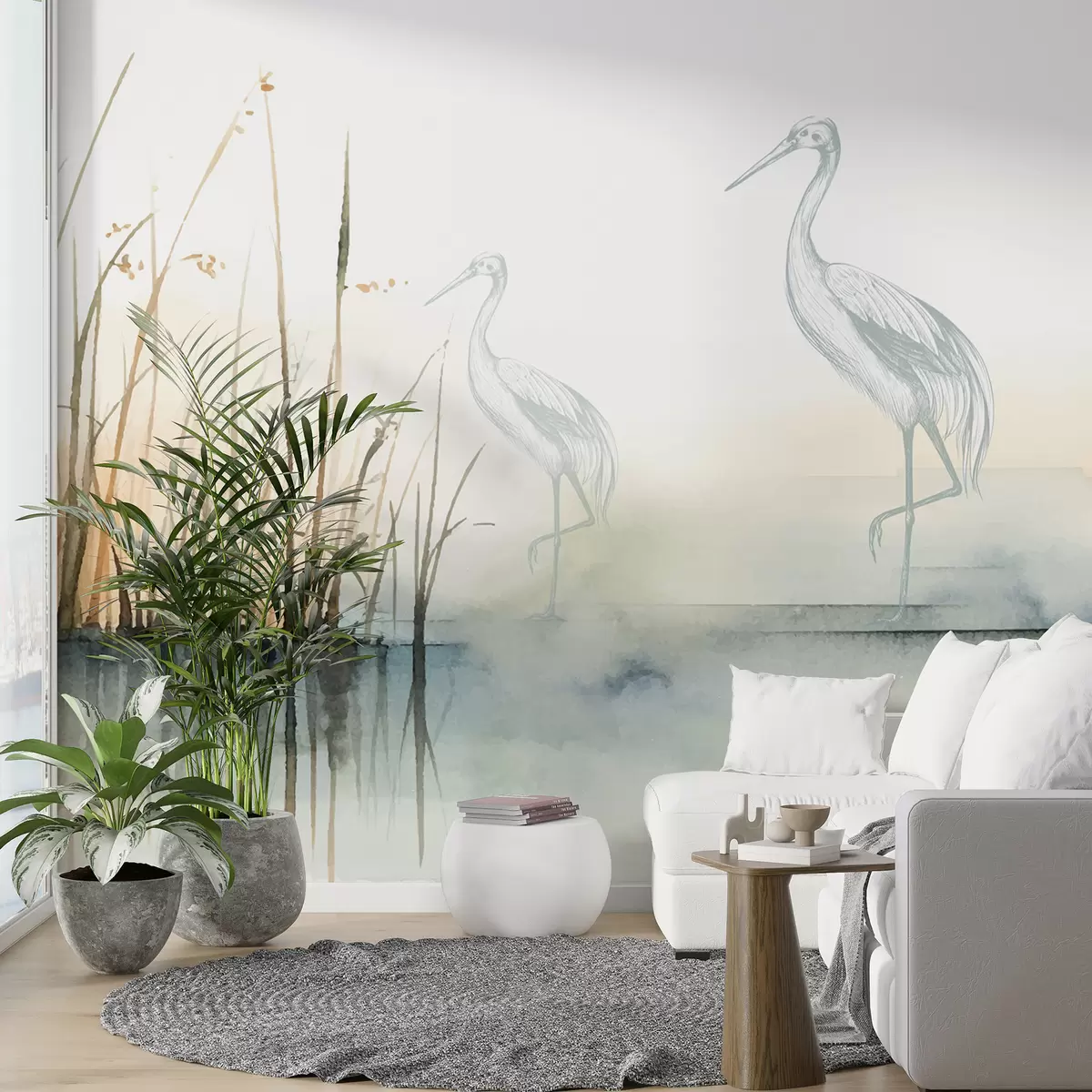 Fotomurales Cañas y garzas de acuarela Nr. w08078