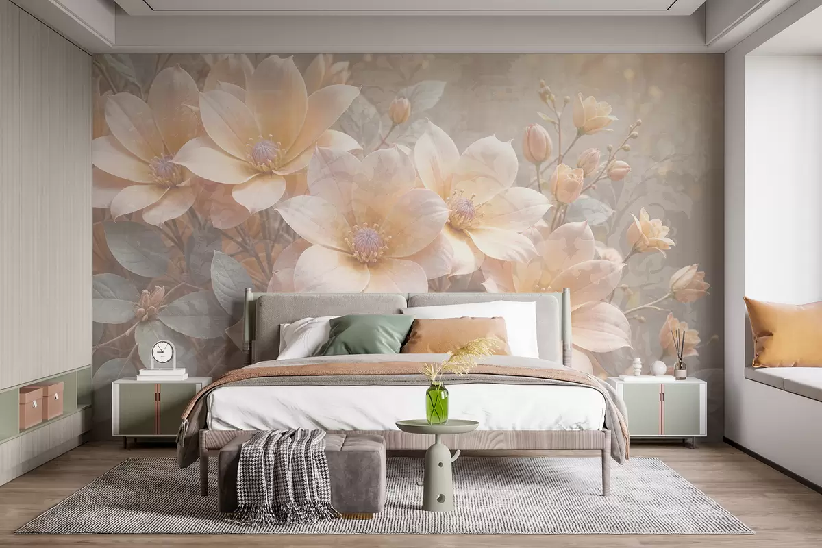 Fotomurales Flores de colores pastel con delicados pétalos sobre un fondo de textura difuminada , creando una atmósfera serena Nr. w08273