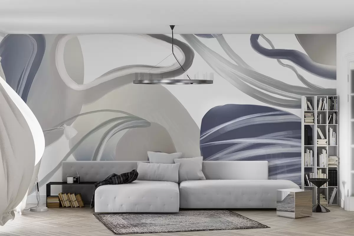 Fotomurales Formas y curvas abstractas arremolinadas en tonos azul oscuro que crean una composición dinámica y fluida Nr. w08279v1
