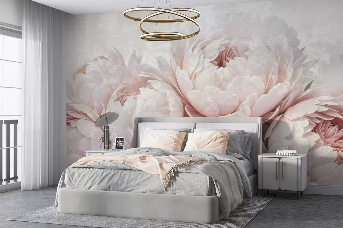 Fotomurales Peonías de color rosa suave con delicados pétalos sobre un fondo vintage de textura ligera Nr. w08312
