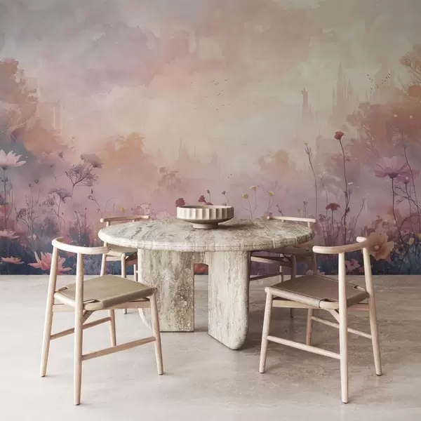 Fotomurales Flores silvestres sobre fondo de silueta de castillo Nr. w08478