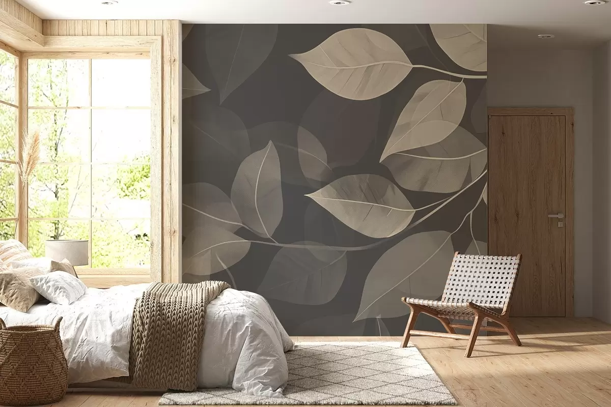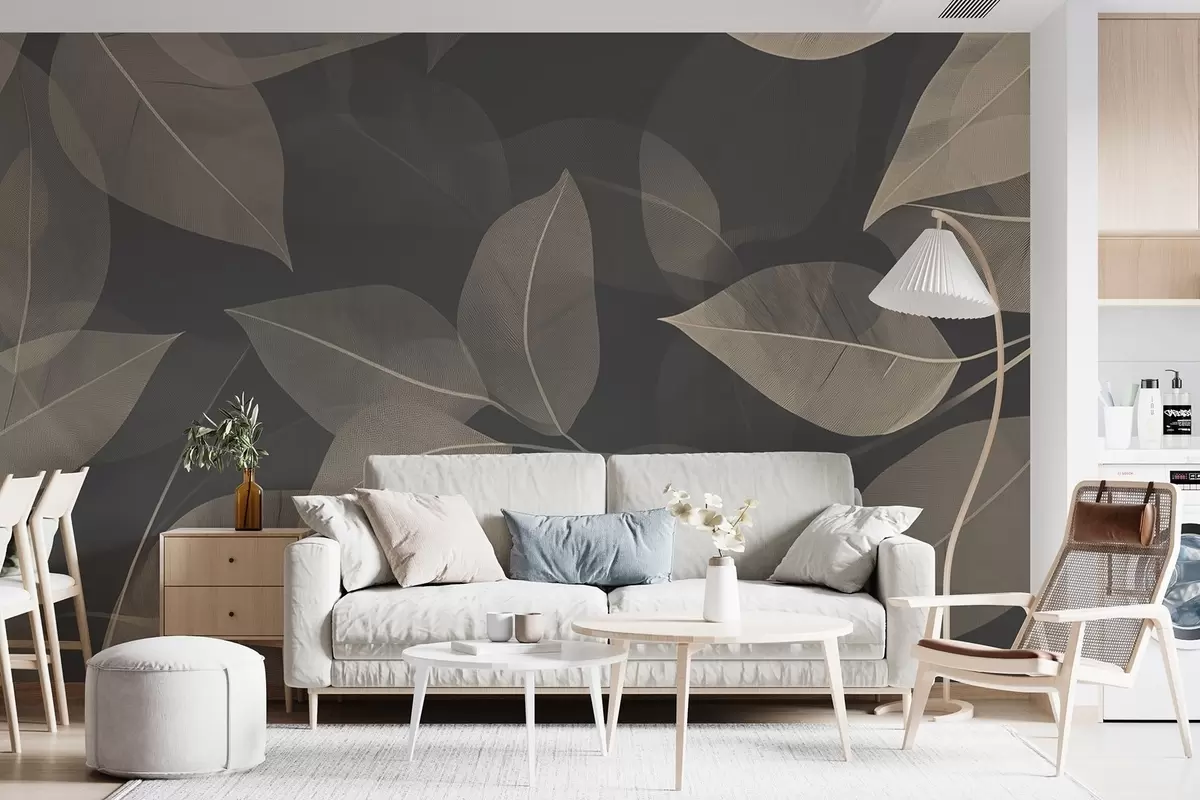 Fotomurales Ramas de hojas en tonos azules y grises Nr. w08502v1