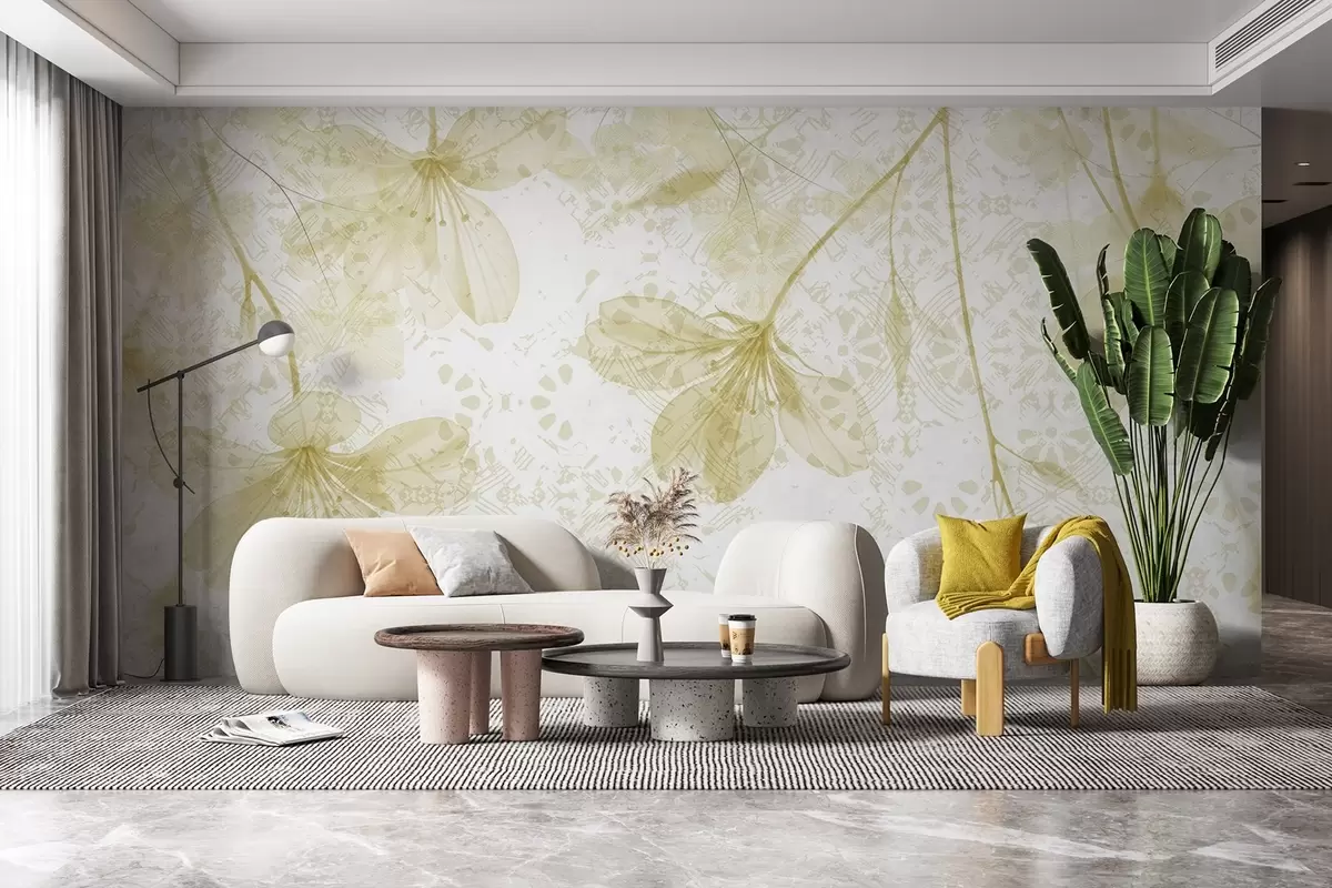 Fotomurales Delicadas flores amarillas y blancas con largos tallos y pétalos sobre un fondo de textura suave y difuminada Nr. w08588v2