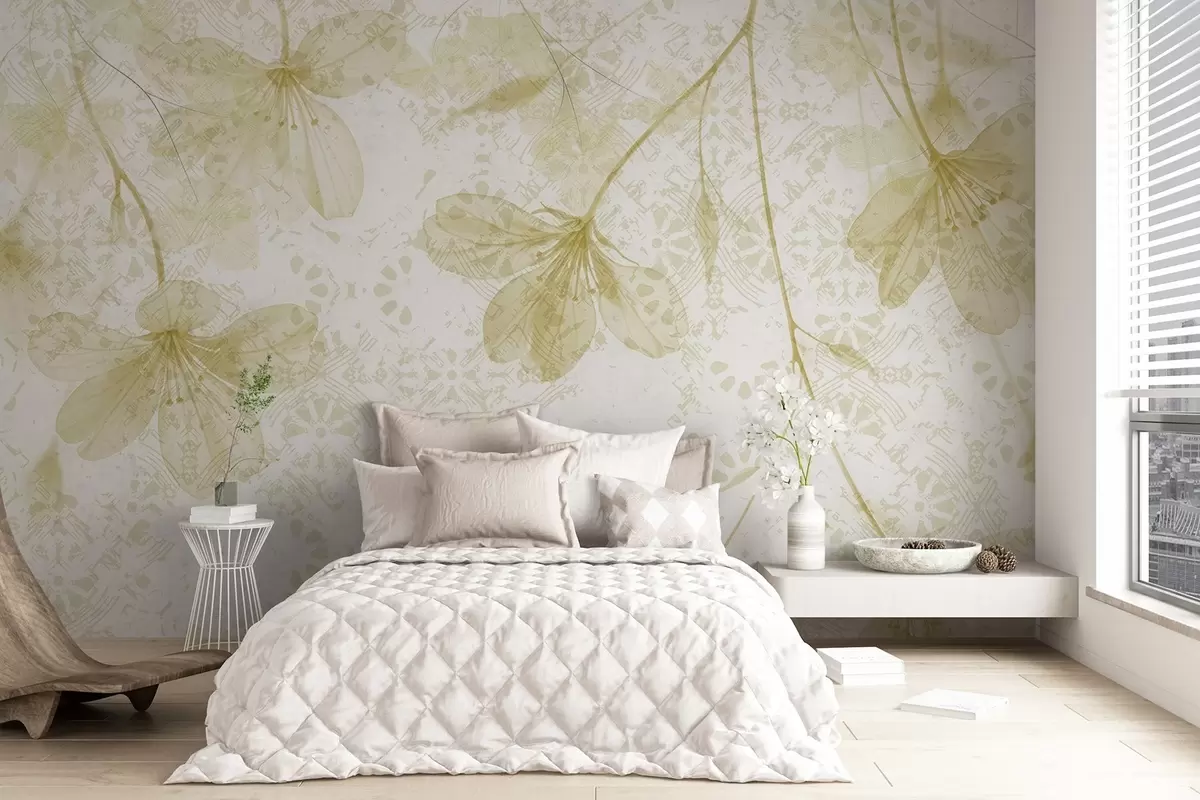 Fotomurales Delicadas flores amarillas y blancas con largos tallos y pétalos sobre un fondo de textura suave y difuminada Nr. w08588v2