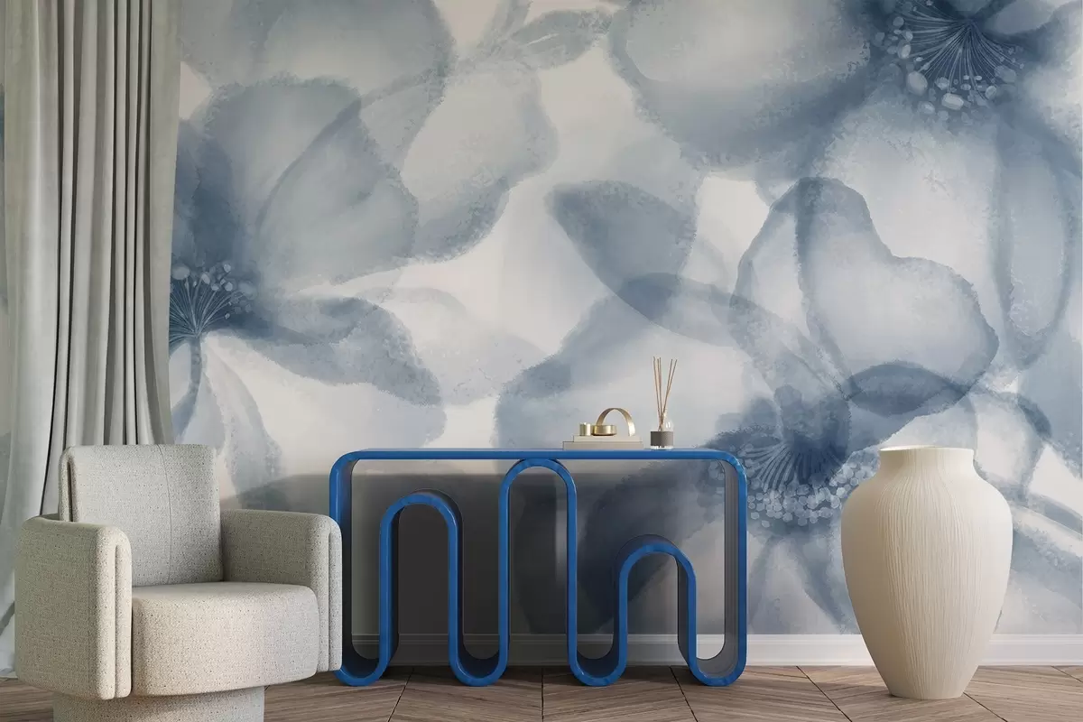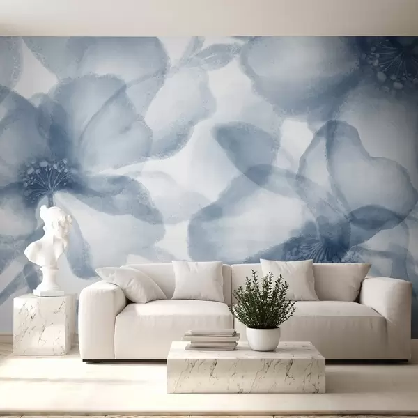 Fotomurales Flores azules abstractas suaves y difuminadas que crean un estampado floral sereno y tranquilizador Nr. w08607