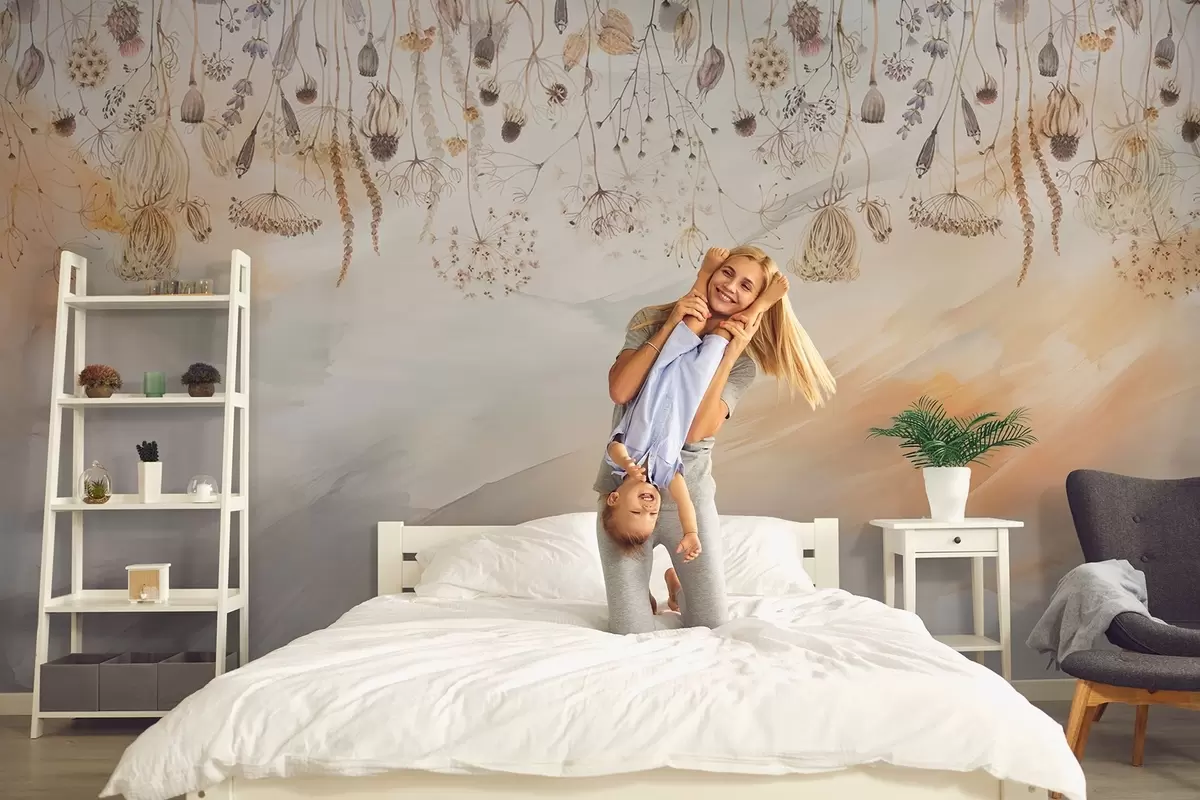 Fotomurales Flores silvestres en estilo acuarela en tonos pastel sobre fondo de pinceladas Nr. w08681