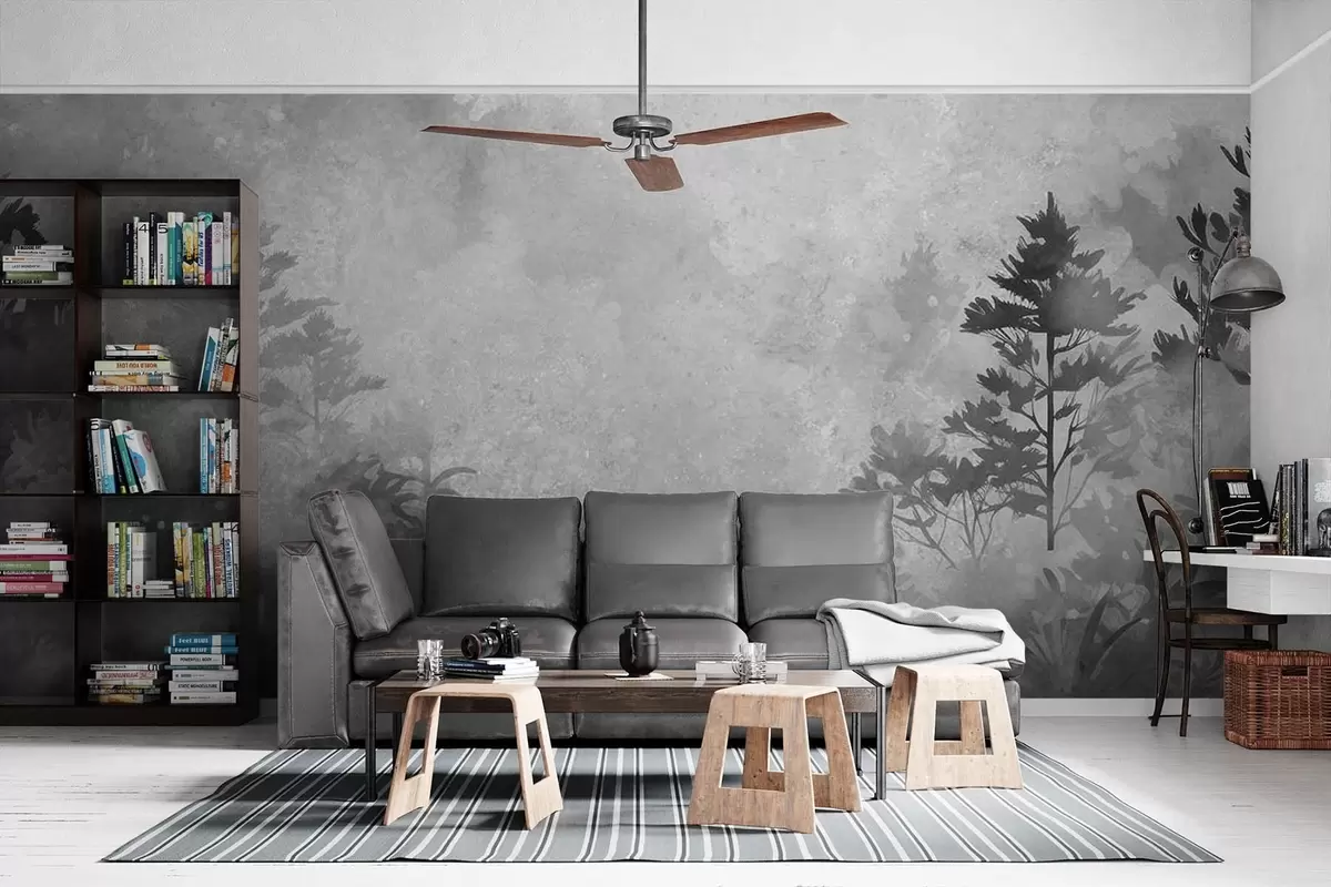 Fotomurales Bosque, imitación acuarela en blanco y negro Nr. w08862v1