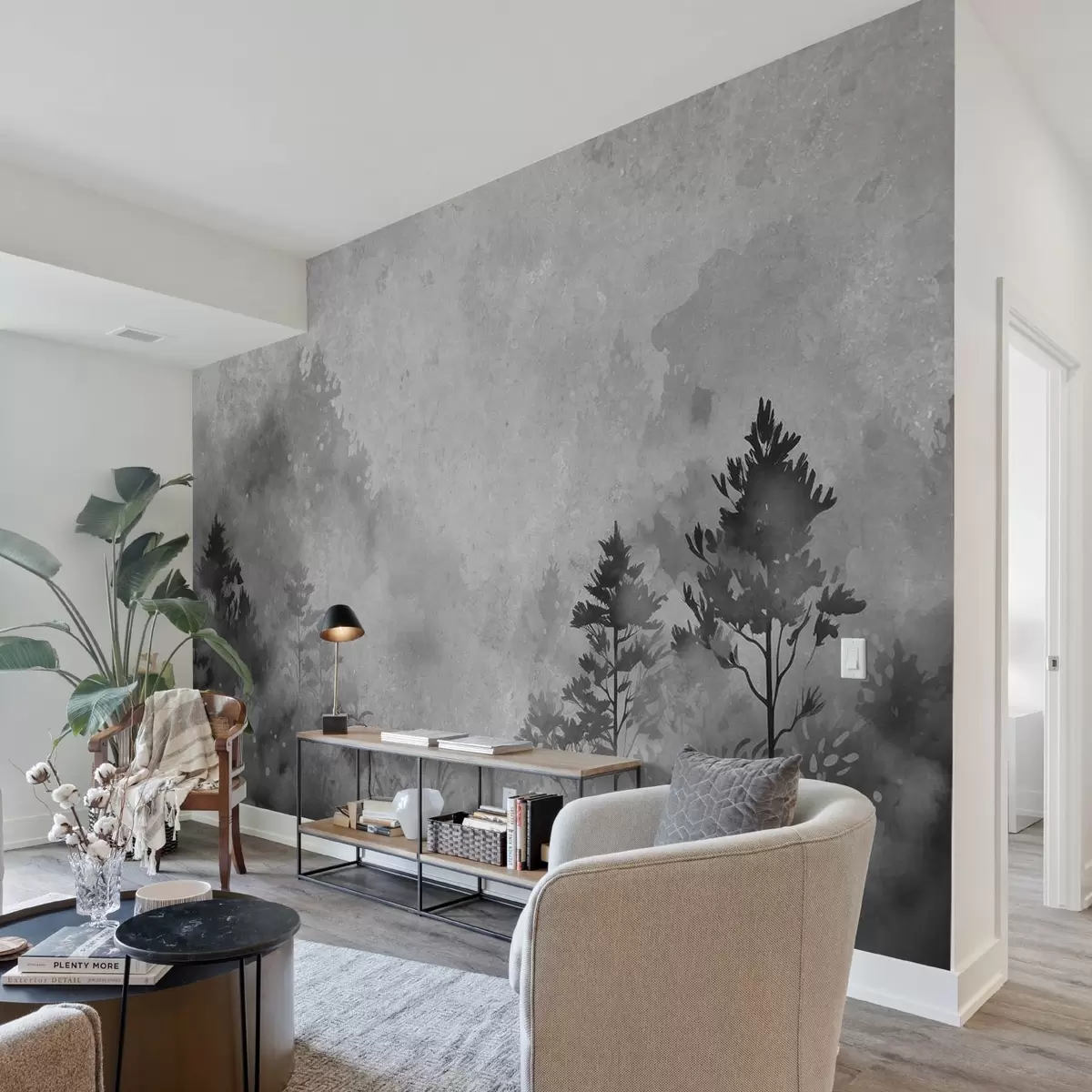 Fotomurales Bosque, imitación acuarela en blanco y negro Nr. w08862v1