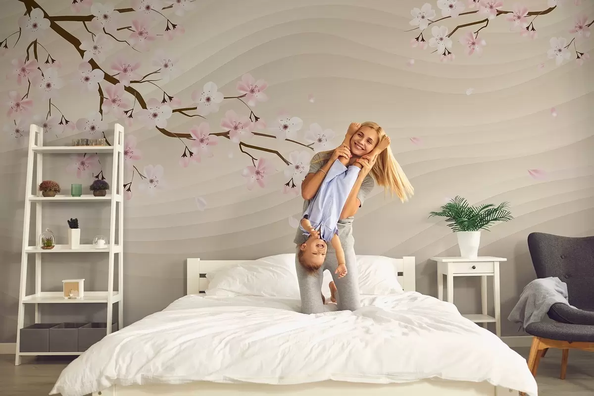 Fotomurales Ramas de sakura sobre fondo ondulado de arena Nr. w08959