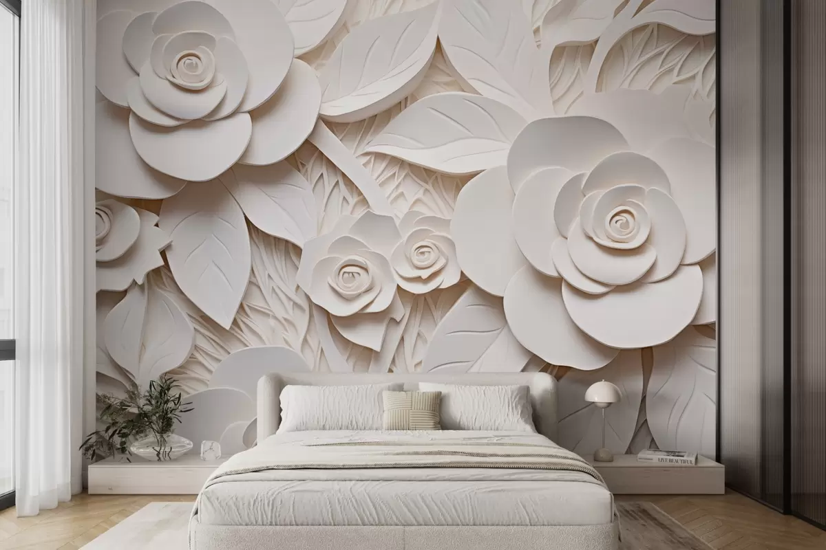 Fotomurales rosas volumétricas blancas en 3D Nr. w08963