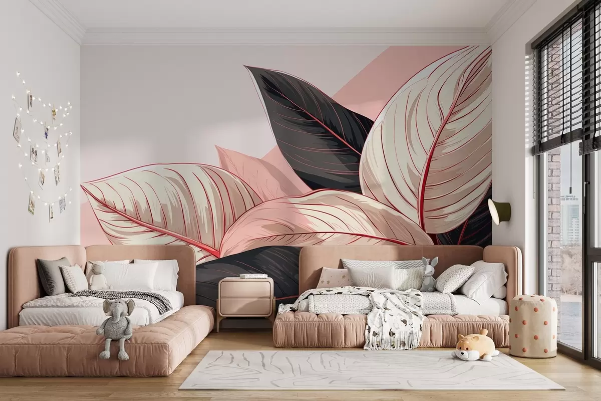 Fotomurales Hojas tropicales grandes de color gris rosado con un fragmento rosa Nr. w08970v1