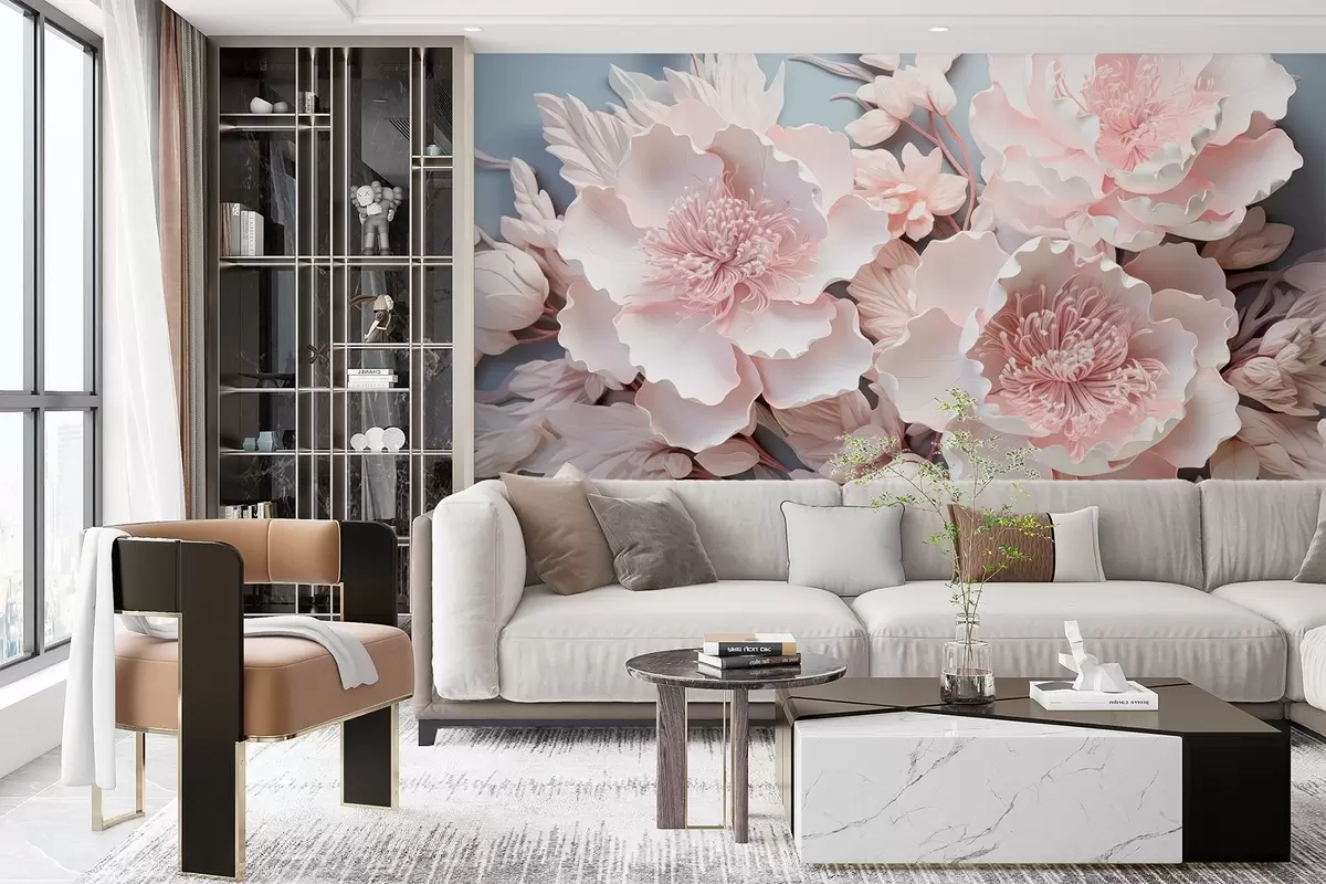 Fotomurales Voluminosas flores rosas en delicados tonos Nr. w08988