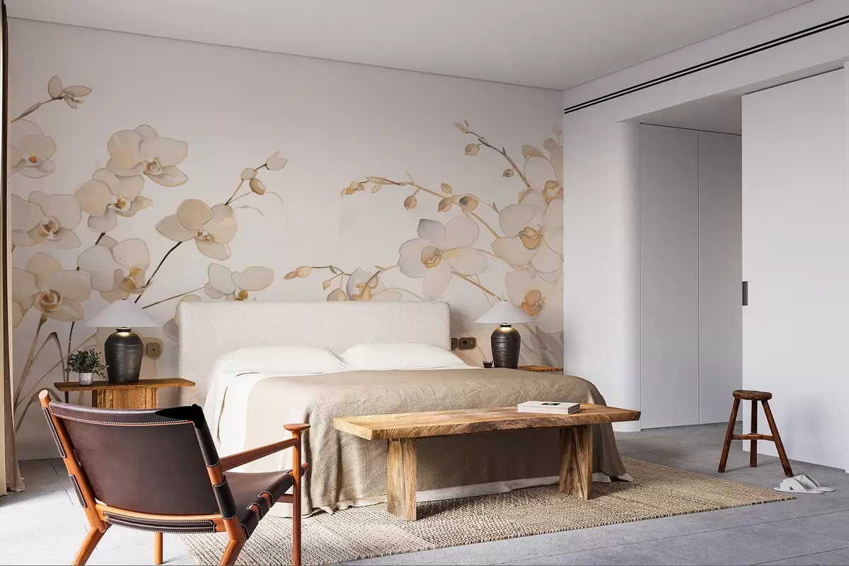Fotomurales Orquídeas beige creciendo a los lados en el agua en estilo acuarela Nr. w08998