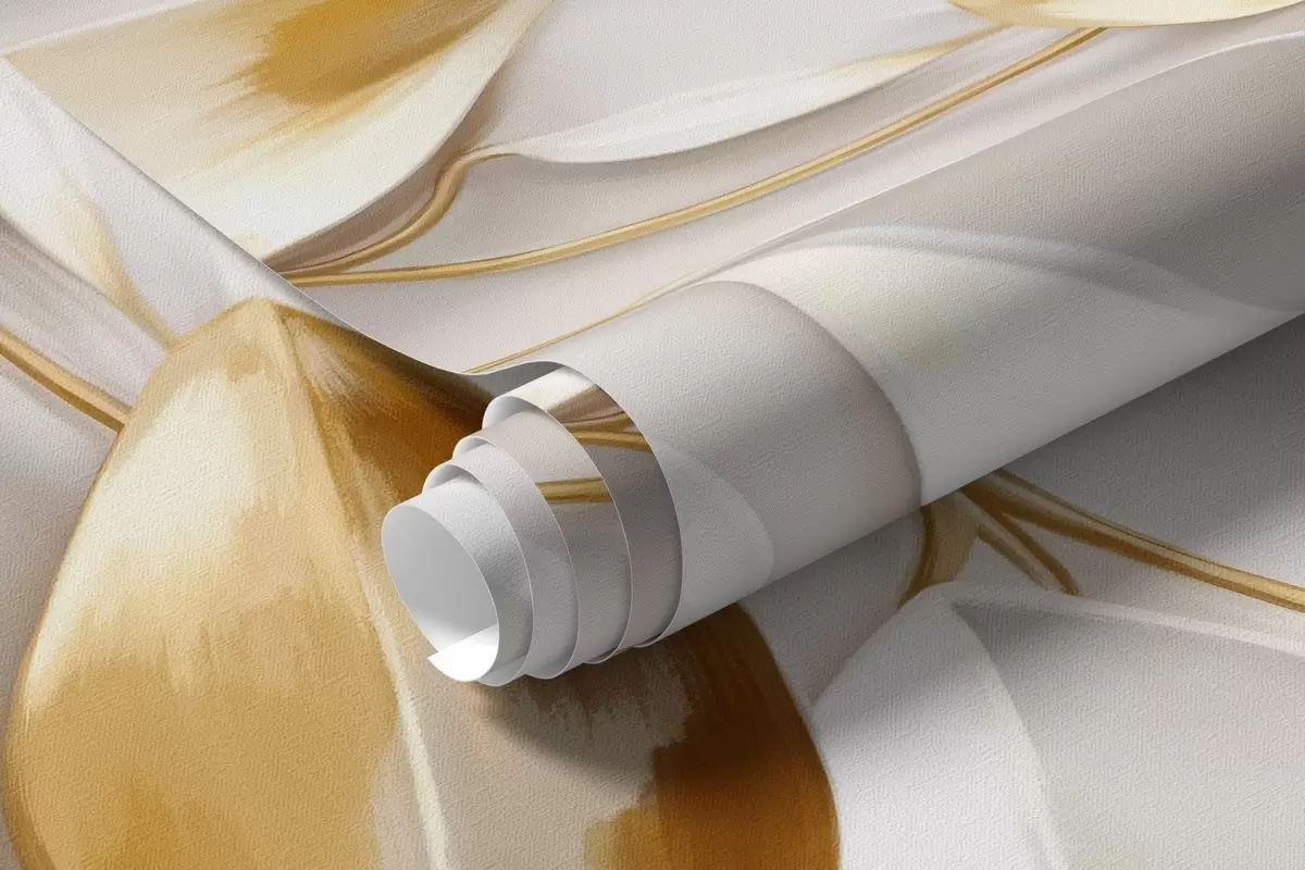 Fotomurales Hojas amarillas y blancas sobre una rama , diseño elegante, fondo blanco, estilo minimalista, arte decorativo , inspirado en la naturaleza Nr. w09015