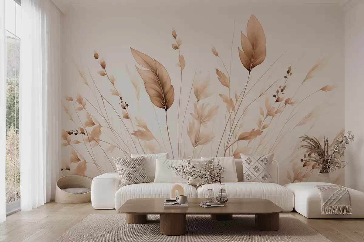 Fotomurales Una danza de hierbas secas al viento en tranquilos colores beige Nr. w09045